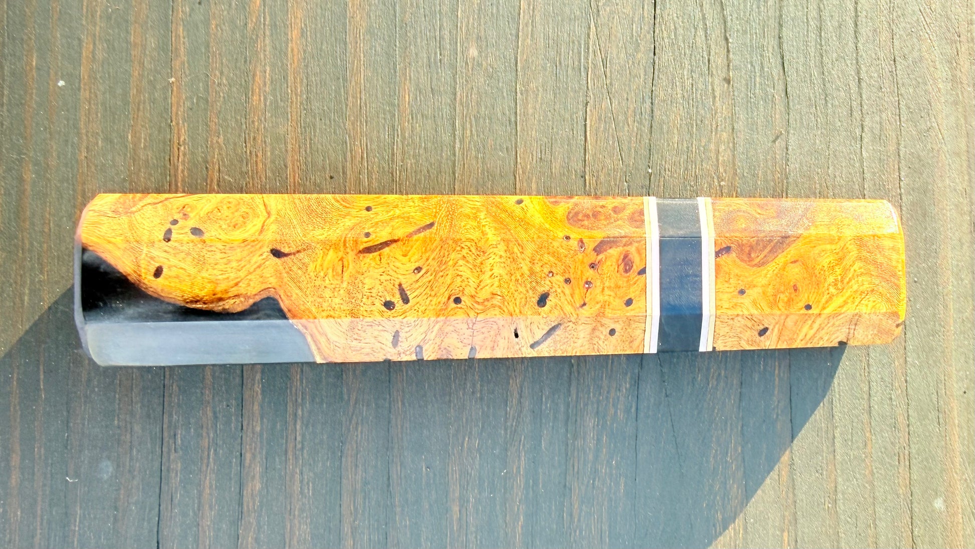 Ipe Burl(Brazilian walnut) hybrid handle/g10, brass, and resin spacers