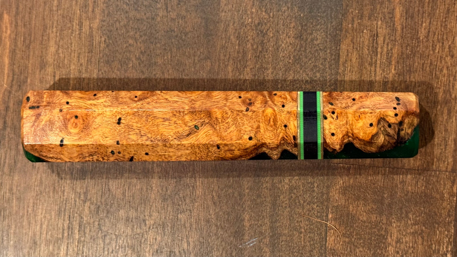 Ipe Burl(Brazilian walnut) hybrid handle/g10, brass, and resin spacers
