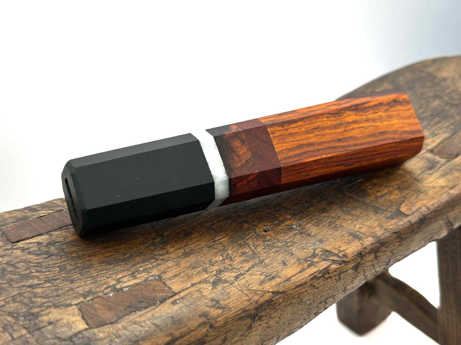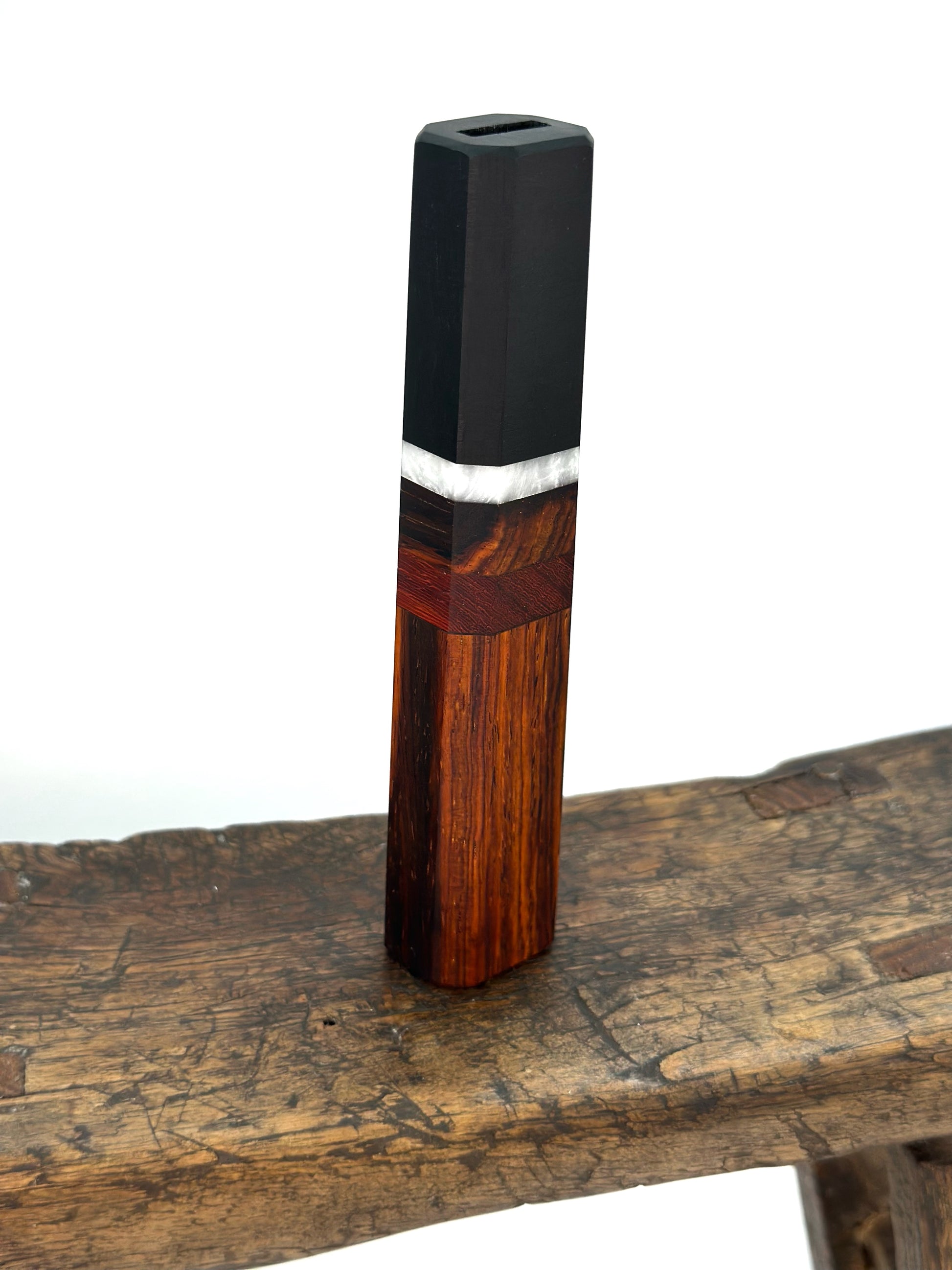 Cocobolo body with Bloodwood, and Acrylester spacer and an Ebony ferrule.