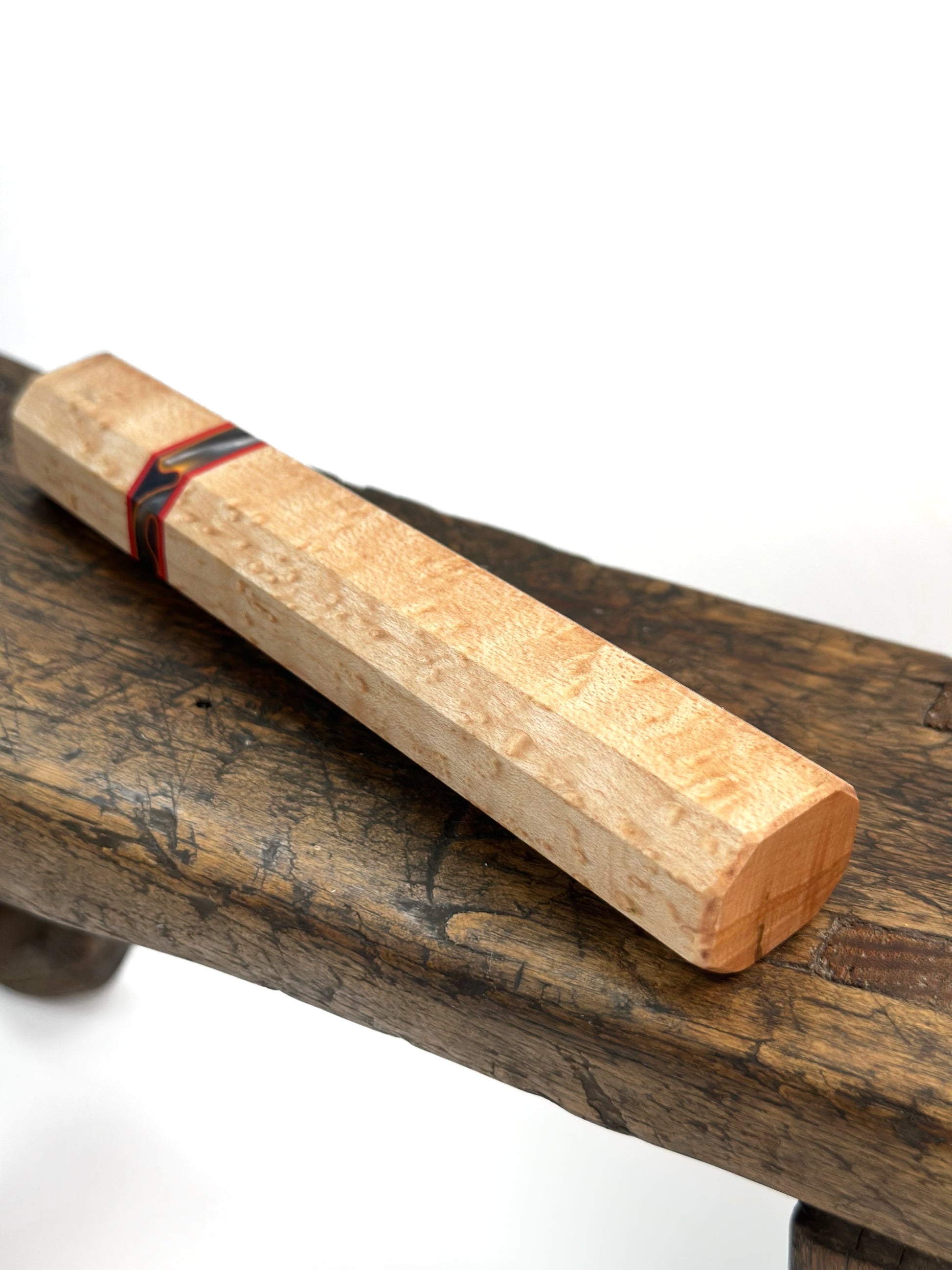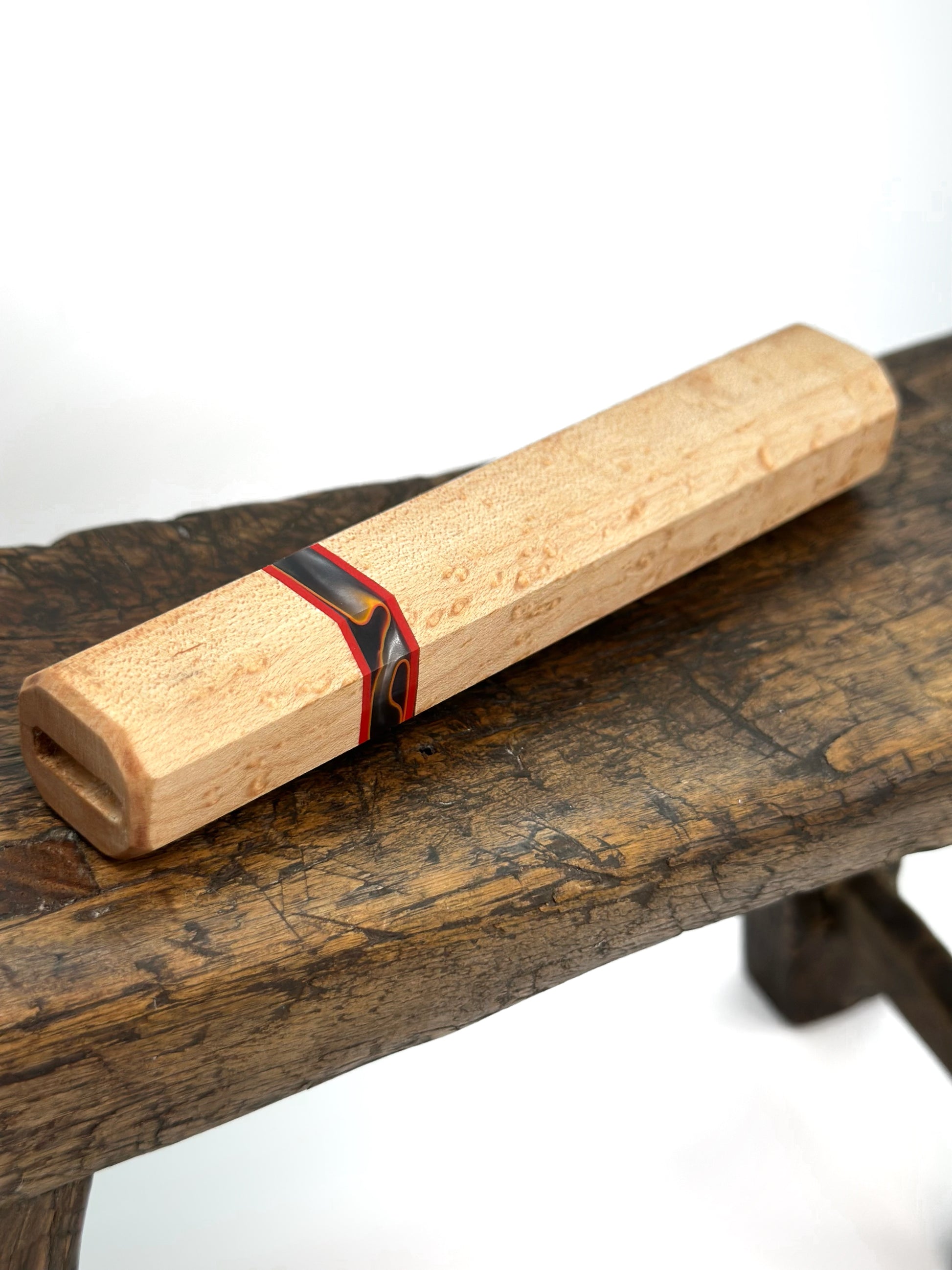 Birds Eye Maple with G10 and an Acrylic spacer.